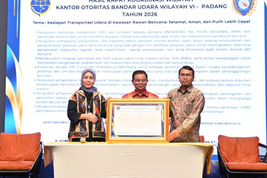 Padang (4/2/2026) – Kementerian Perhubungan menegaskan komitmen dalam memperkuat kesiapan sistem transportasi udara di wilayah rawan bencana. Hal tersebut disampaikan dalam Rapat Koordinasi Wilayah Kerja (Rakorwil) Kantor Otoritas Bandar Udara (KOBU) Wilayah VI Padang Tahun 2026 yang digelar pada 2–3 Februari 2026 di Padang, Sumatera Barat.